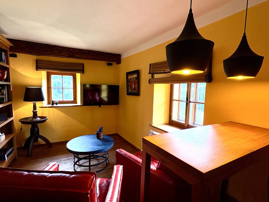 Most of the renovations were completed with old “recycled” wood and natural materials, including stone and marble from the local quarry or local wood such as larch. The interior walls (there is not a straight one in the house) are finished in a rough plaster finish to keep the place looking natural and authentic. 12 years later we finished the interior of the house – now working on the outside.